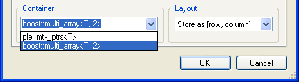 CopyC++template<class T> class mtx_multi_array_adapter : public ple::imtx_impl<T> { public: mtx_multi_array_adapter(boost::multi_array<T, 2>& impl) : _impl(&impl) {} virtual void resize(bool preserve, mtx_size dim0, mtx_size dim1) { boost::multi_array<T, 2>::extent_gen extents; (*_impl).resize(extents[dim0][dim1]); } virtual T& at(mtx_size i0, mtx_size i1) { return (*_impl)[i0][i1]; } virtual const T& at(mtx_size i0, mtx_size i1) const { return (*_impl)[i0][i1]; } virtual mtx_size size(int dim) const { return (mtx_size)(*_impl).shape()[dim]; } protected: boost::multi_array<T, 2>* _impl; }; template<class T> mtx_multi_array_adapter<T> mtx_adapter(boost::multi_array<T, 2>& src) { return mtx_multi_array_adapter<T>(src); }