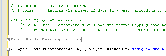 CopyC++CXlOper* DaysInStandardYear_Impl(CXlOper& xloResult, unsigned short int DayCount) { // Validate and translate inputs xlvlc__DaysInStandardYear__DayCount.Validate(DayCount, _T("DayCount")); // End of generated code //}}XLP_SRC ... }